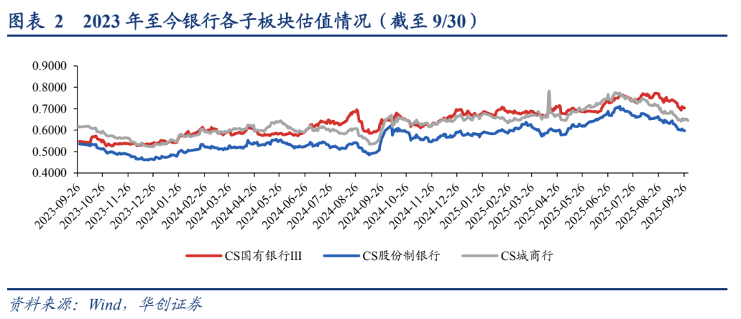 2、各子板块表现:国有行、股份行、城商行估值均有所下行
