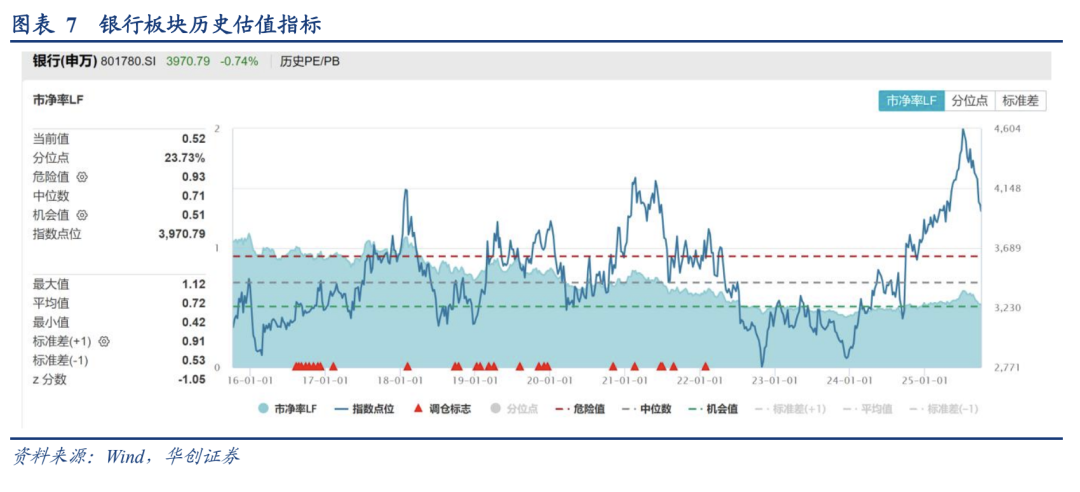 银行板块当前估值和股息率处历史偏低分位。截止9月30日,银行板块(申万银行指数,801780.SI)整体PE为6.10倍,近10年历史分位数35.59%,PB为0.52倍,历史分位数23.73%。股息率4.29%,历史分位点45.49%。