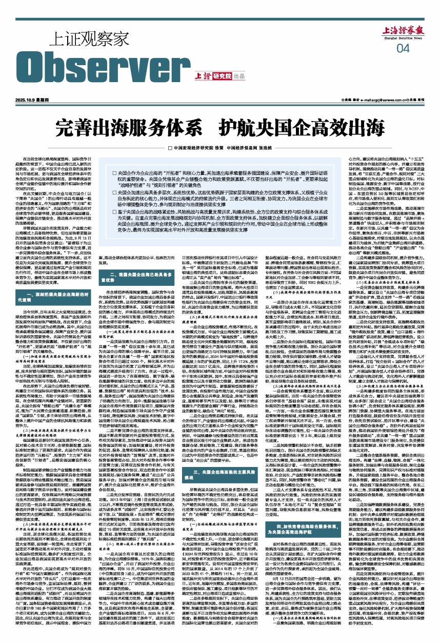 □鉴于央国企出海的战略紧迫性、风险挑战与高质量发展诉求,构建系统性、全方位的政策支持与综合服务体系成为关键。应重点完善出海发展战略规划与协同机制、全方面政策支持体系,加快建立全面综合服务体系,以破解央国企出海瓶颈、提升全球竞争力。通过发挥其产业引领和规则先行作用,带动中国企业在全球市场上形成整体竞争力,最终为实现国家高水平对外开放和高质量发展提供坚实支撑