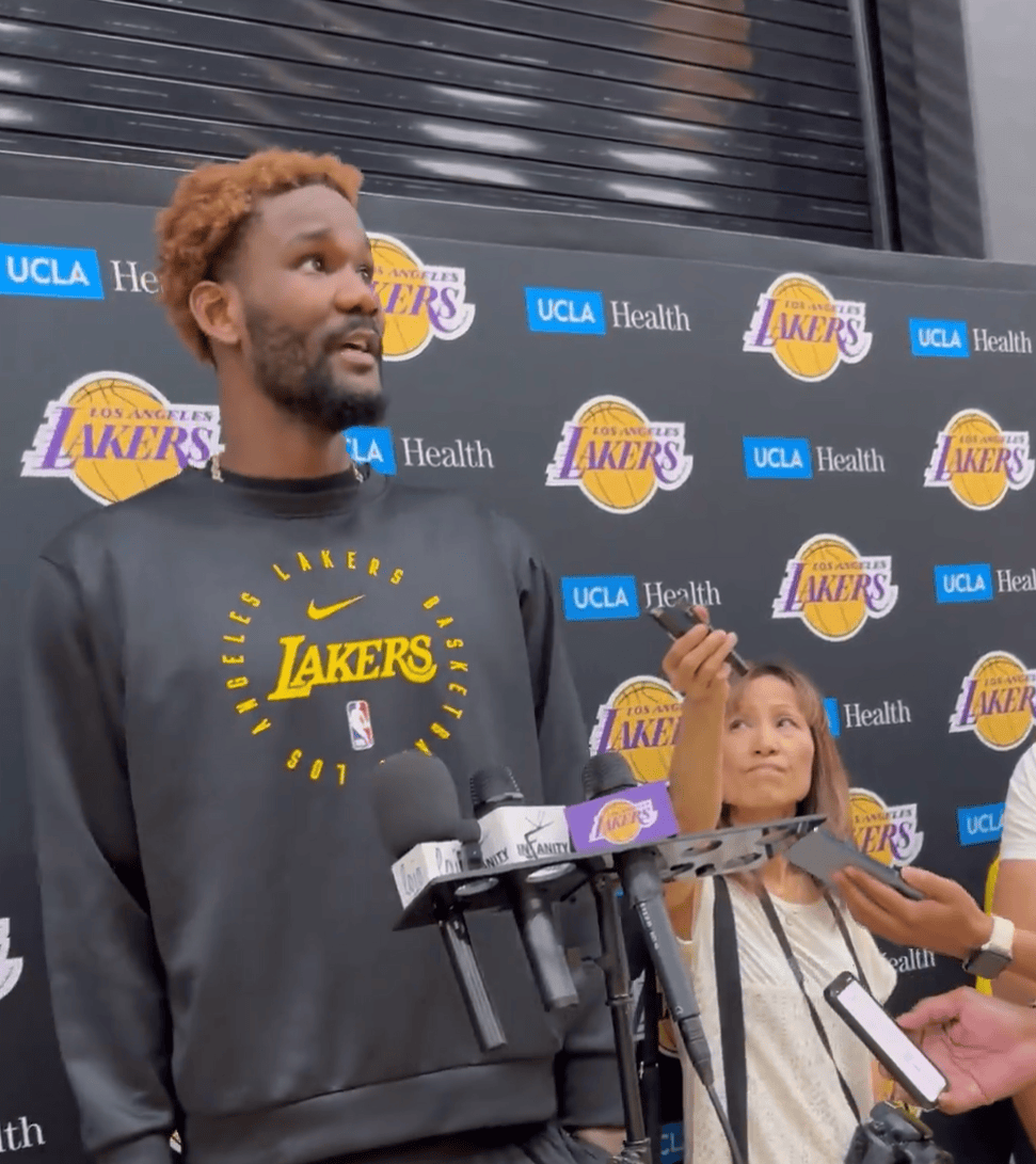 记者问德安德烈-艾顿,他是如何适应这支新的湖人的。与卢卡-东契奇和勒布朗-詹姆斯之间的化学反应进展如何。