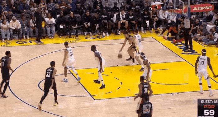 虎扑10月09日讯NBA季前赛,开拓者对阵勇士的比赛正在进行中。