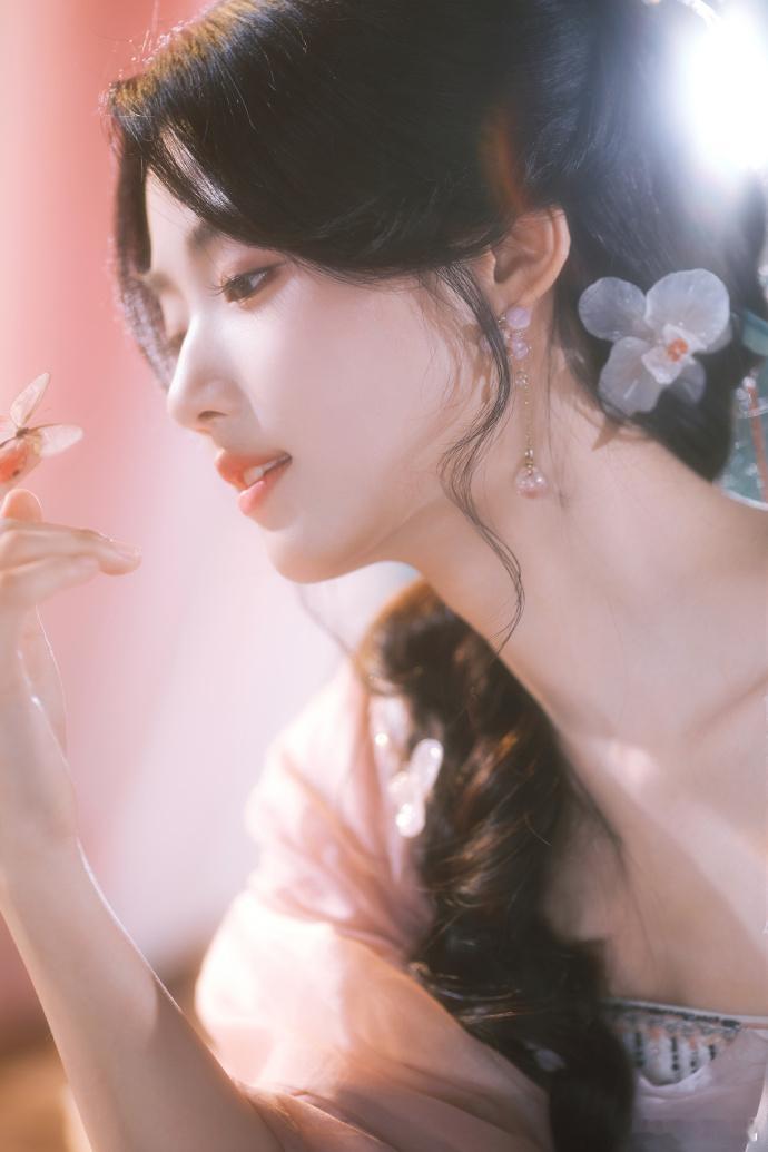 今儿卢昱晓化身粉色的明意,粉色的清新感与角色气质相互呼应。这种视觉呈现,让明意的