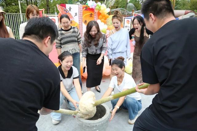一场充满烟火气的“打糍粑”热闹开启。家长代表抡槌击糯,你追我赶,欢声笑语中,糍粑渐成圆润软糯。