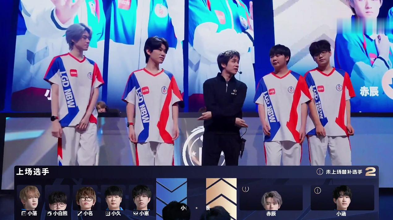 LGD.NBW第3局触发大师轮换,小白熊小久换下,赤辰小涵换上