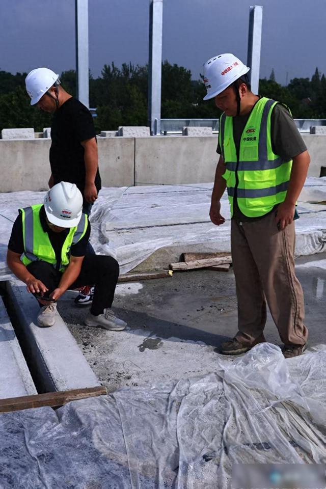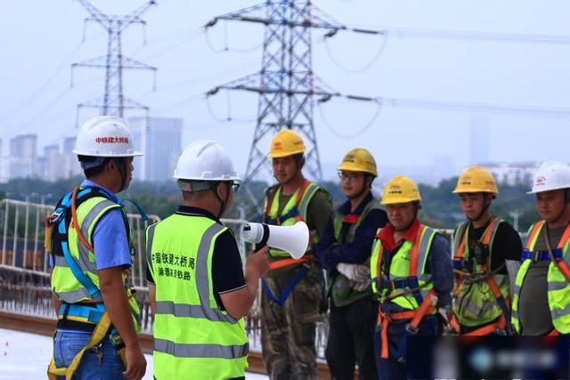 “国庆中秋长假期间,我们制梁场200多干部职工全员在岗不休息,确保工程施工保质保量进行。”10月3日,天空中不时下起阵雨,在位于仙女镇曹王林园场的沪渝蓉高铁沪宁段(北沿江)中铁建大桥局江都制梁场,梁场党支部书记李文军说,“所有施工,除大雨天不具备施工条件、影响产品质量的会停工,其他诸如桥面系,箱梁架设和吊围栏等施工,仍然正常进行。”