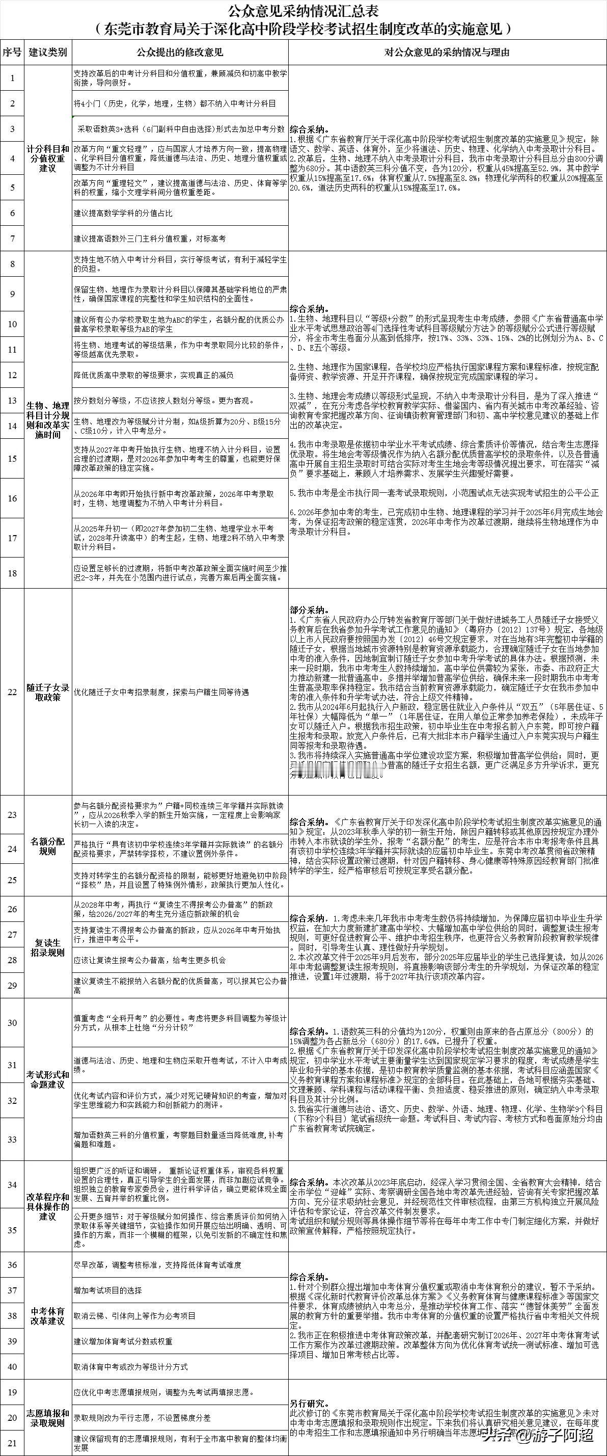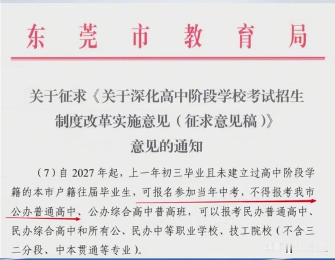 东莞市中考改革意见稿正式被采纳并实施。 2025年8月,东莞市向公众征集中考改革方案意见,经综合研判后,将征集意见、采纳情况及理由已分类公布。 中考改革涵盖计分科目分值权重、生地会考、复读生招录等九大类别,市教育局对此进行了详尽解释。 此次改革影响最大的应该当属东莞初三复读生,2027年东莞初三复读生不能报考公办普通高中。