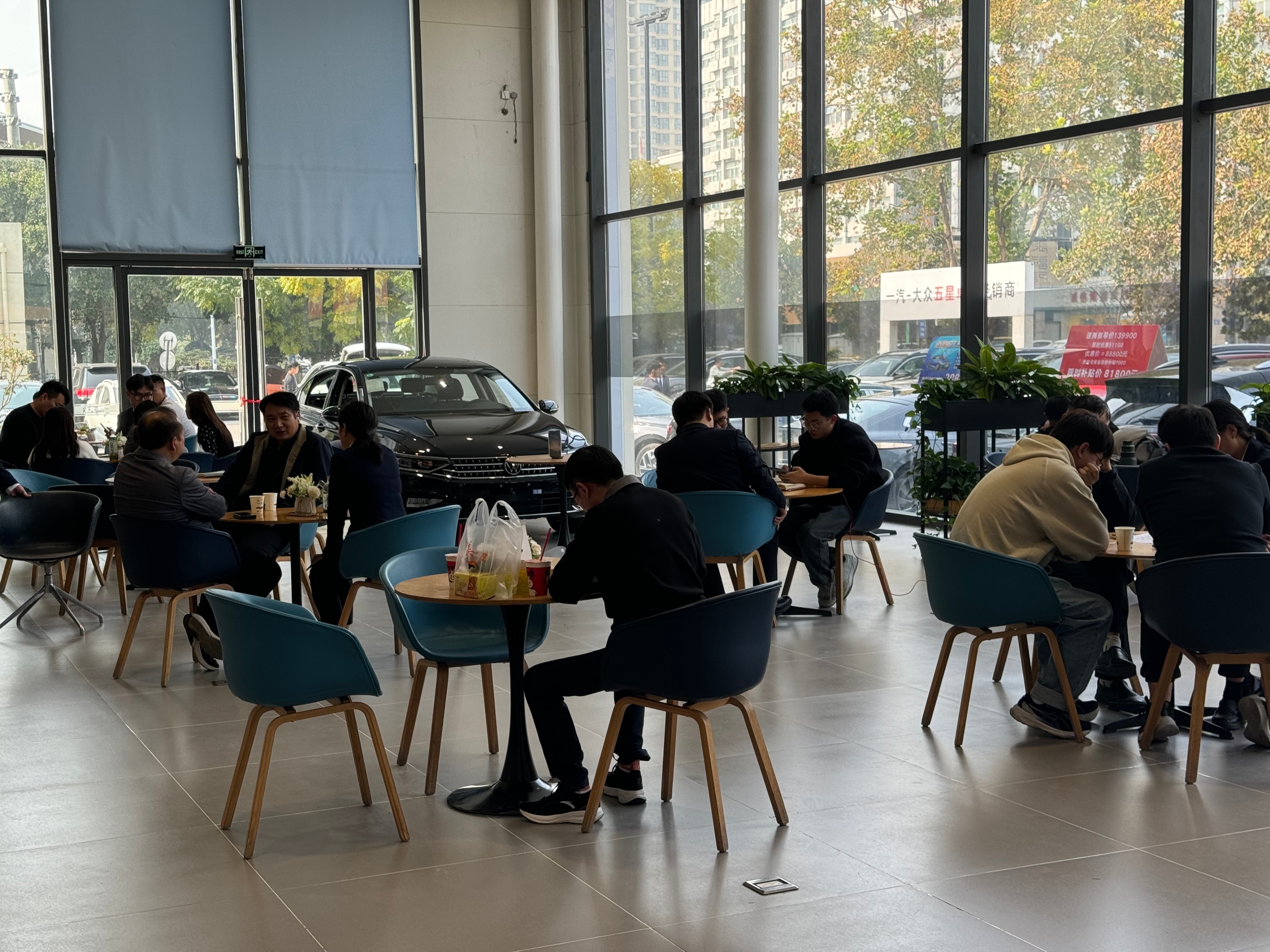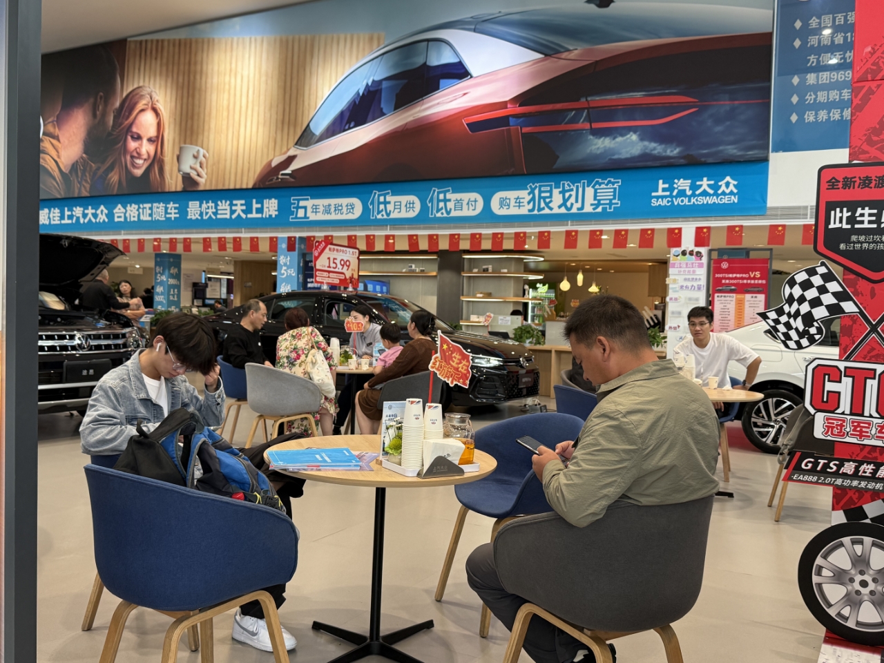 和吉利、比亚迪那边的热闹完全不同,河南车市的另一边却显得格外冷清。记者在郑州几家奥迪、宝马4S店看到,展厅里的展车比看车的人还多,销售要么低头看手机,要么聚在一起聊天,很少有客户主动咨询。