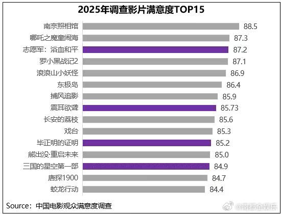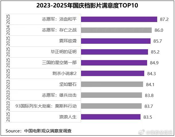 志愿军3居国庆档观众满意度首位2025年国庆档中国电影观众满意度调查结果显示,调查的7部影片中有3部超85分。其中,战争题材的《志愿军:浴血和平》以87.2分居首。满意度居首位的《志愿军:浴血和平》综合表现较为稳健,票房及排片始终位列第一。你看这部电影了吗[好喜欢]?2025中国电影观众满意度调查