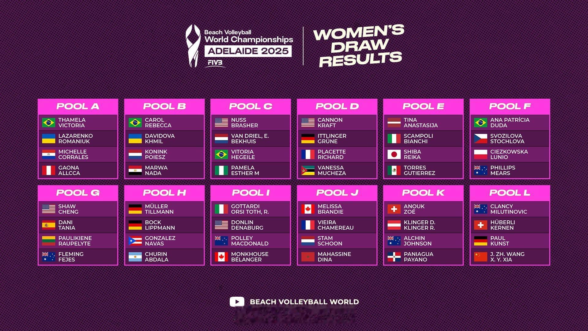 【沙排世锦赛分组抽签揭晓】国际排坛动态 2025年沙排世锦赛将于11月14-23