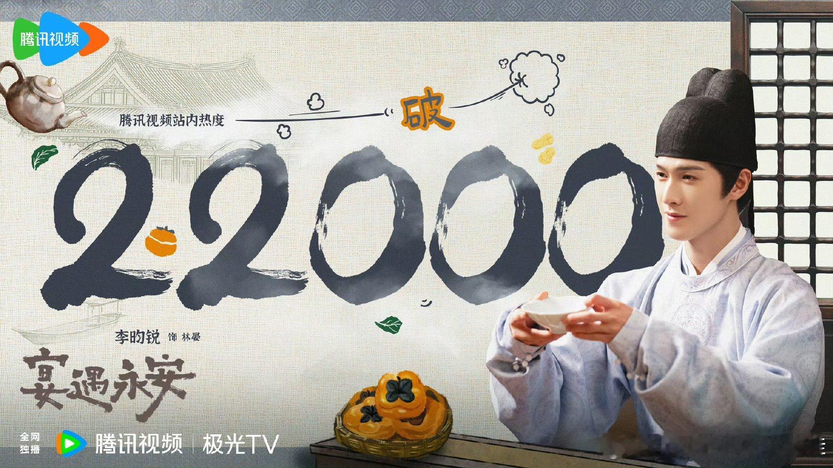 李昀锐《宴遇永安》首播5广,热度已经突破22000,小林的扛招商能力好强![羞嗒嗒]