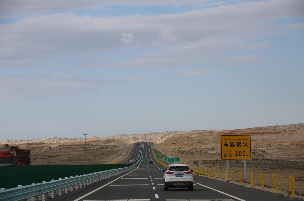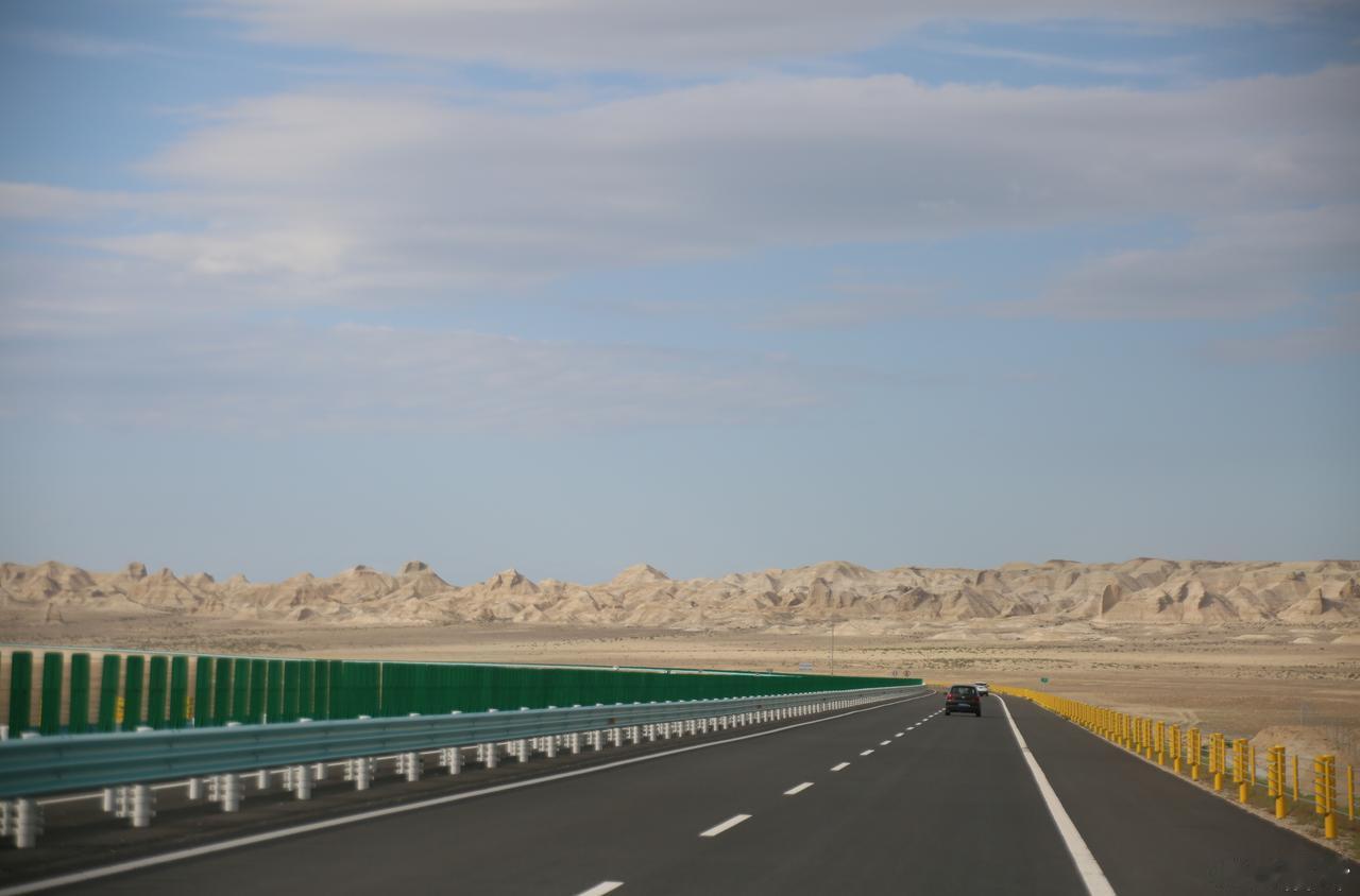 新疆,乌鲁木齐向北,前往乌伦古湖的途中景色。 阿乌高速是这几年新通车的沙漠高速公路。 从乌鲁木齐到阿勒泰,穿越整个准噶尔盆地,以及其中的古尔班通古特沙漠。 当初走这段路的时候,全程手机无信号。不知道现在有没有信号了…… 进高速之前, 一定要加满油, 一定要加满油, 一定要加满油。