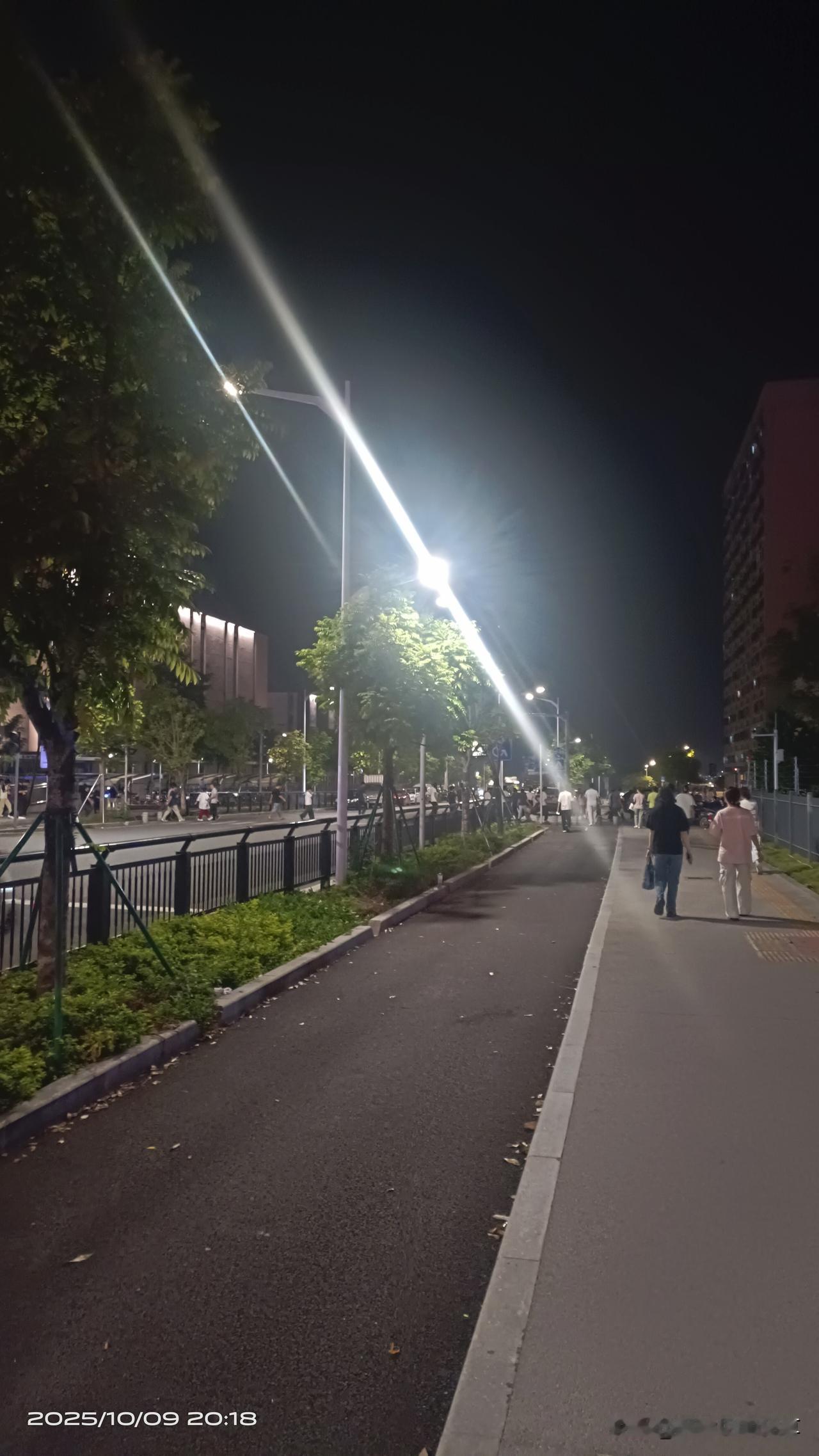 广州知识城下班路上最新现状实拍: 晚上八点钟很多厂的员工开始下班了,可见路上员工朋友们正走在下班回家的路上,每次从车间走出来走到工厂大门外,总感觉浑身很放松,从紧张的工作氛围中一下子解脱了出来,就连迎面吹过来的一丝丝微风都感觉是甜的。 走着走着忽然间发现今晚的地摊宵夜市场都被统一安排到旁边的那条路上了,旁边的那条路原来一个人都没有,今晚上就像逛市场一样,人来人往,消费群体基本都是附近工厂的员工。而每天下班回家的这条路今天很通畅,也清静了许多,没有了往日熙熙攘攘的景象,感觉也不错。这样的安排既解决了占道经营问题又解决了民生问题,一举两得。 拍摄于2025.10.9/20:20黄埔知识城