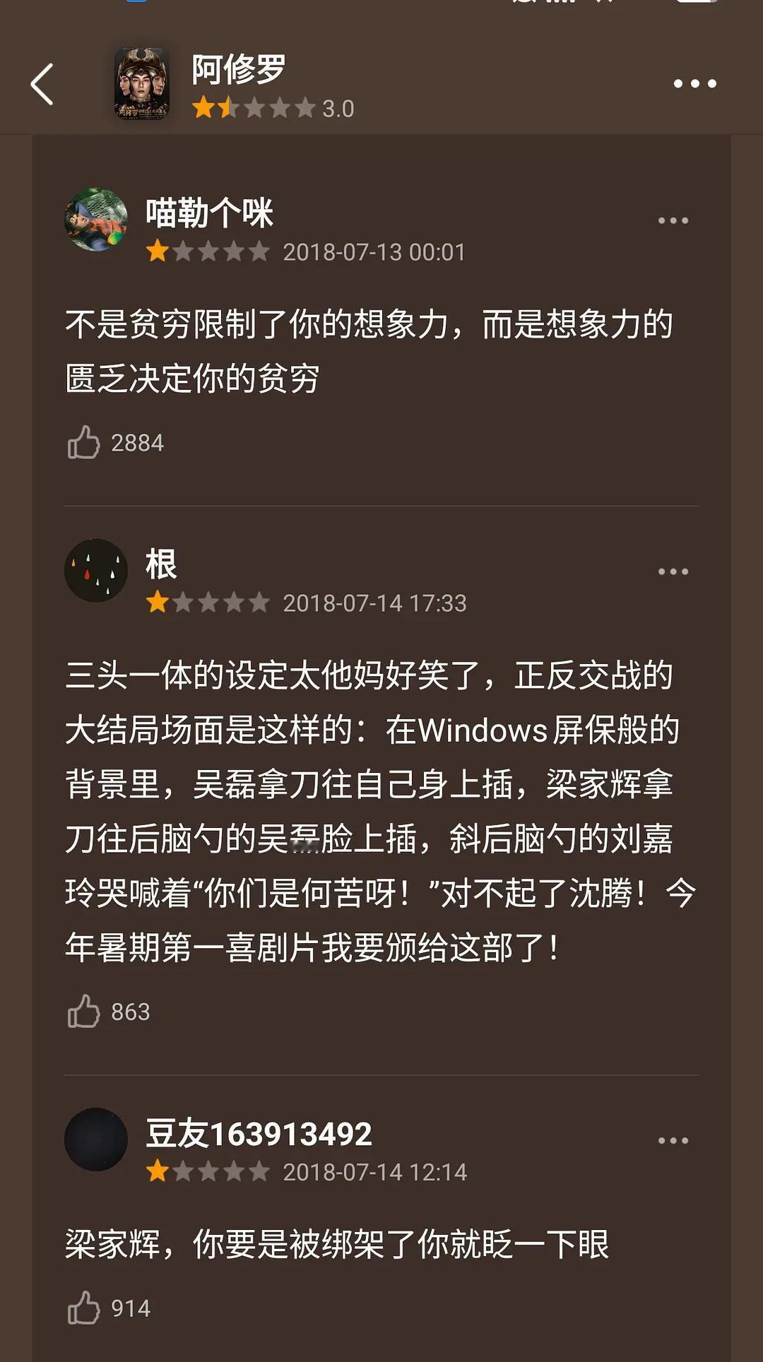 阿修罗豆瓣评分3.0…….真的有这么难看吗?
