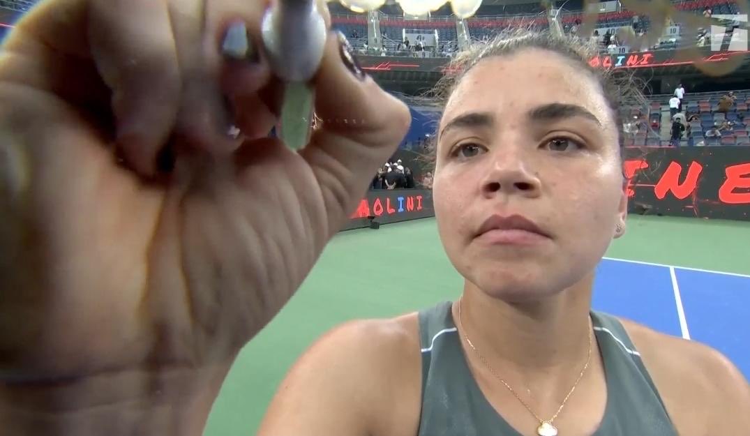 记者TheTennisLetter发推特报道,贾斯敏·保利尼在克拉拉·陶森被迫退出武汉站比赛后于摄像机上写下祝福语:“早日康复克拉拉”