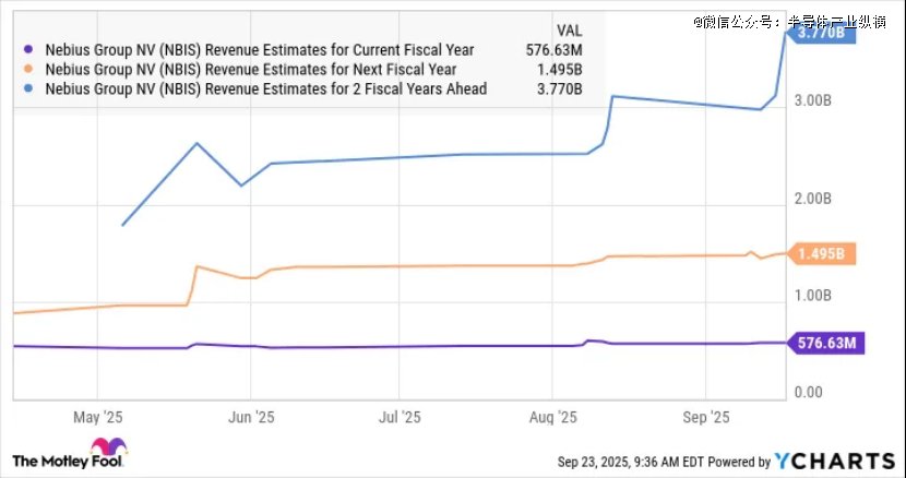 Nebius的股价在2025年迄今已上涨309%,2025年上半年的收入为1.56亿美元,上半年的收入同比增长545%。分析师预计,Nebius年底的收入将增长390%,达到5.76亿美元。