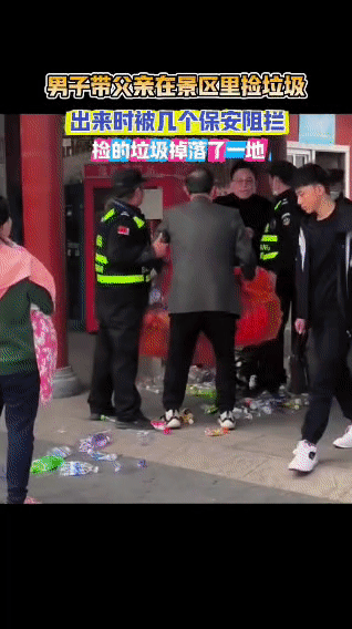 国庆期间,一男子带着父亲去景区游玩,在此期间,老父亲发现景区里有很多空瓶子,忍不住去捡,男子呢,也非常孝顺,并没有阻止老父亲,而是陪着他一起捡。于是,父子俩带着几个大袋子来到景区,一边欣赏美景,一边捡拾游客丢弃的空瓶子。 他们沿着景区步道,仔细地把空瓶子一一收入袋中,看着逐渐装满的袋子,心里满是成就感。 等他们捡完垃圾,准备离开景区时,几个保安却拦住了他们。双方就此产生了争执。在拉扯和争执过程中,张先生和父亲辛苦捡来的垃圾散落了一地,场面有些混乱,周围的游客也纷纷投来关注的目光。 友友们,你们知道为什么保安会拦着他们吗?带父亲旅游 孝顺 捡瓶子 作者声明:前面捡垃圾的过程根据动图里描述的内容编的,最后被拦下是真实的哈[奸笑]