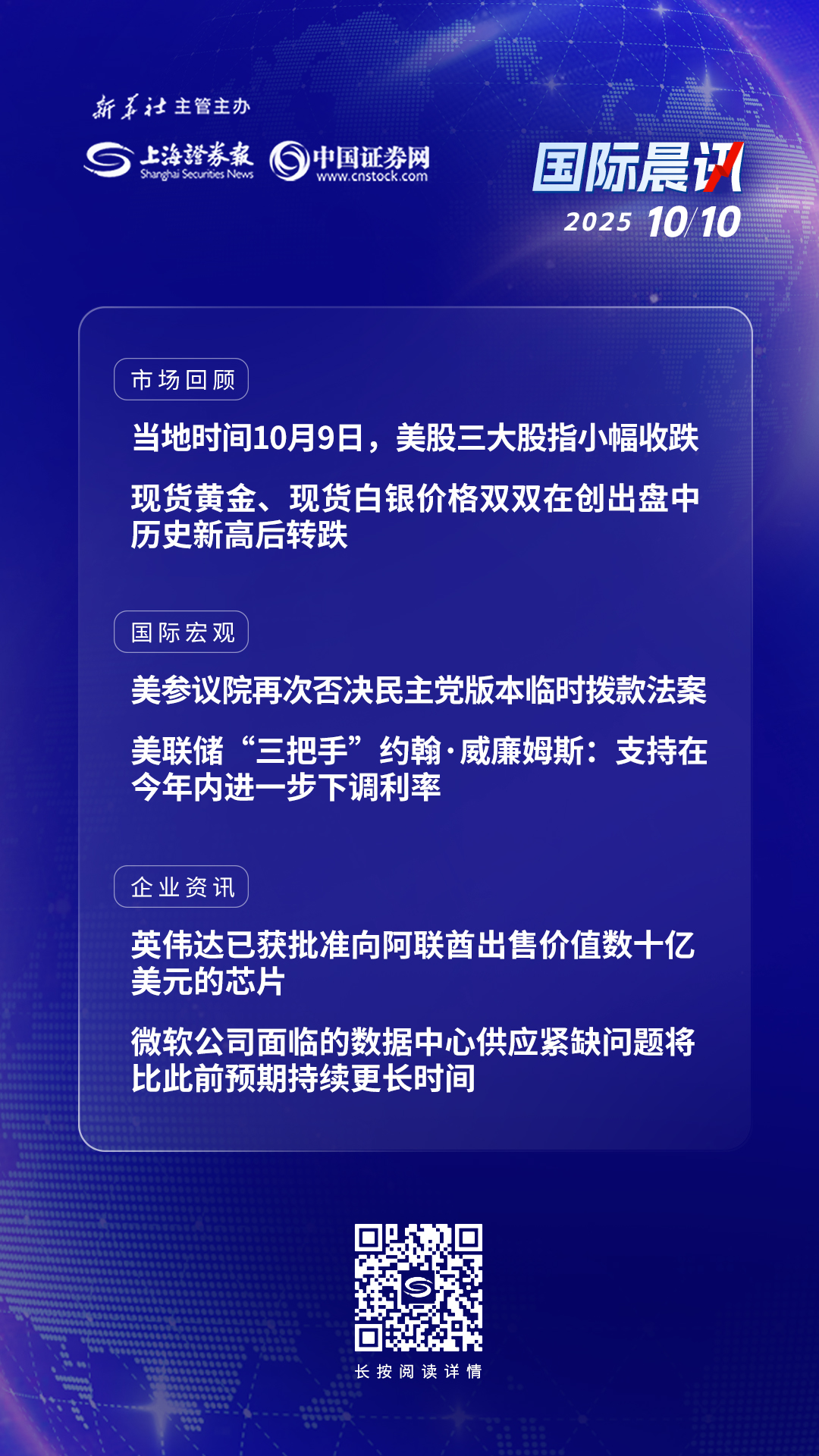 当地时间10月9日,美股三大股指小幅收跌。截至收盘,道指跌0.52%报46358.42点,标普500指数跌0.28%报6735.11点,纳指跌0.08%报23024.63点。