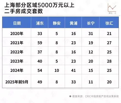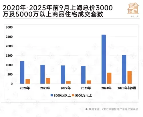 这里面也有关键点。2024年起,上海总价3000万及5000万以上的顶豪成交出现明显增长。