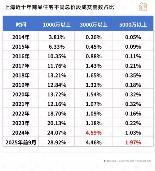 进入2025年,前9月3000万以上成交占比与2024年全年接近,5000万以上成交再次跃升至1.97%。
