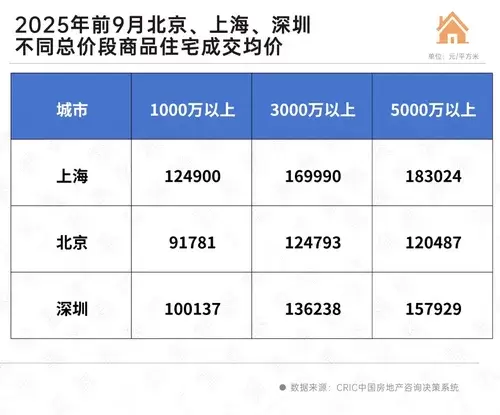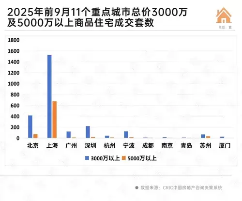 2025年前三季度,上海总价3000万以上商品住宅成交1524套,5000万以上成交674套,皆高于北京和深圳套数之和。