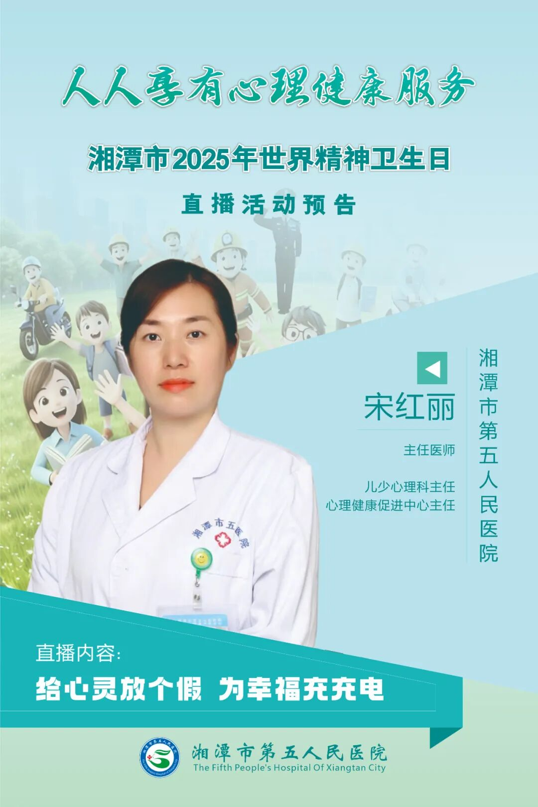 10月10日(周五)下午4点,湘潭市2025年世界精神卫生日直播活动启动,关注我们,关爱你的心理健康。