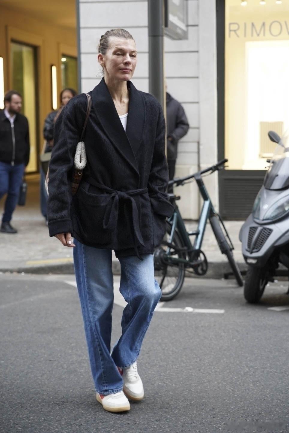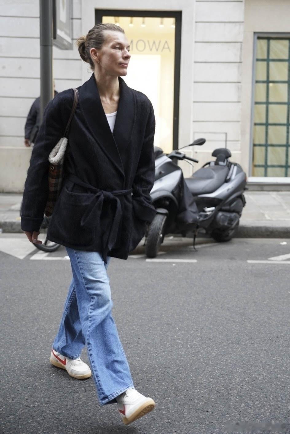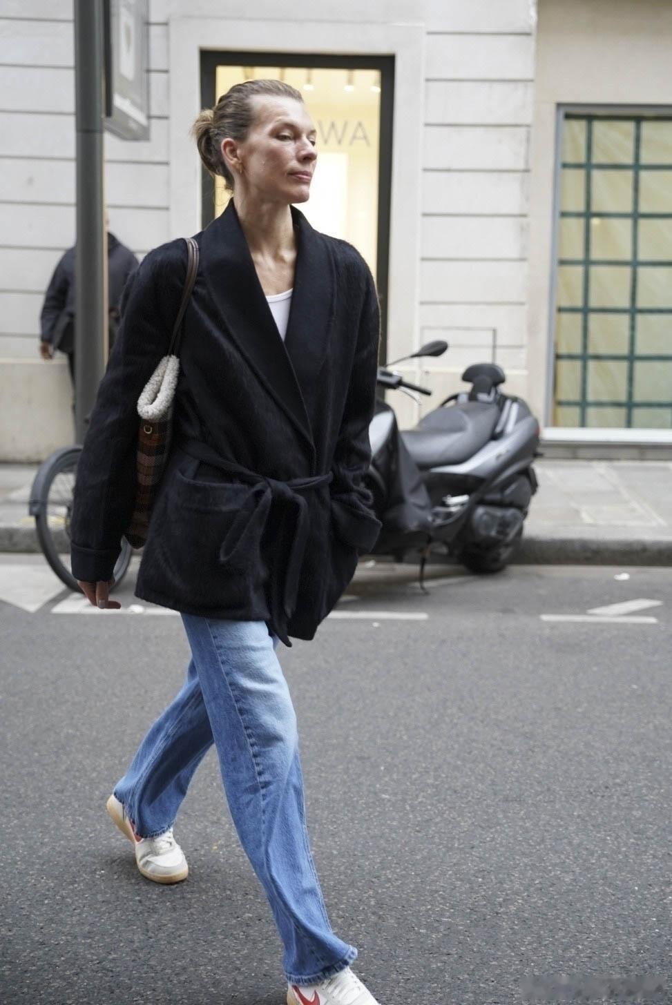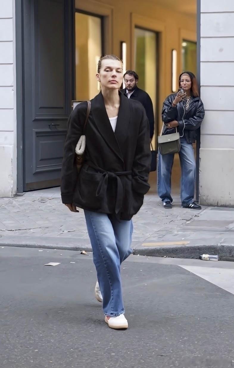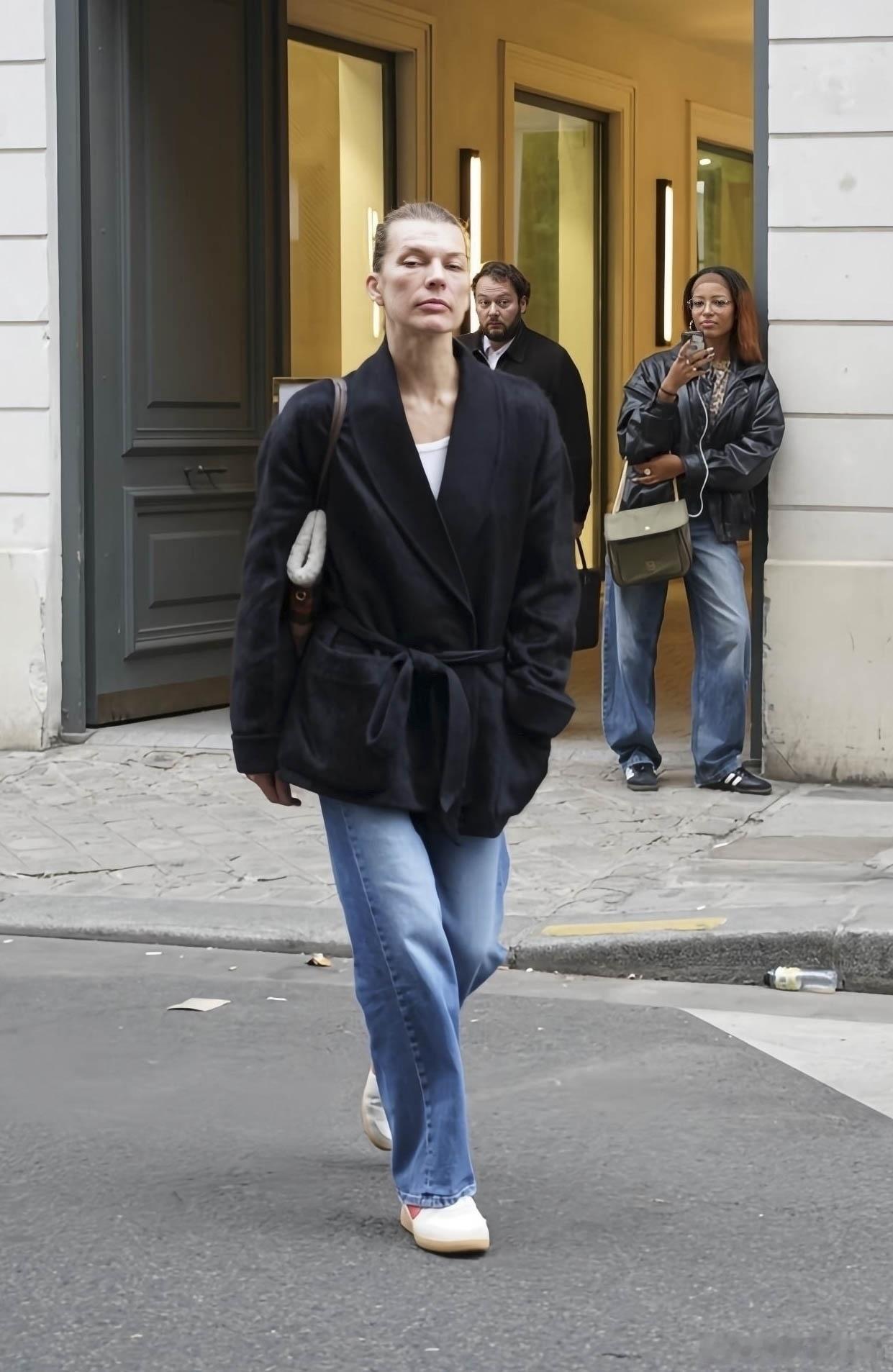 milla jovovich米拉乔沃维奇在巴黎外出,素颜的米拉返回自己下榻的酒店