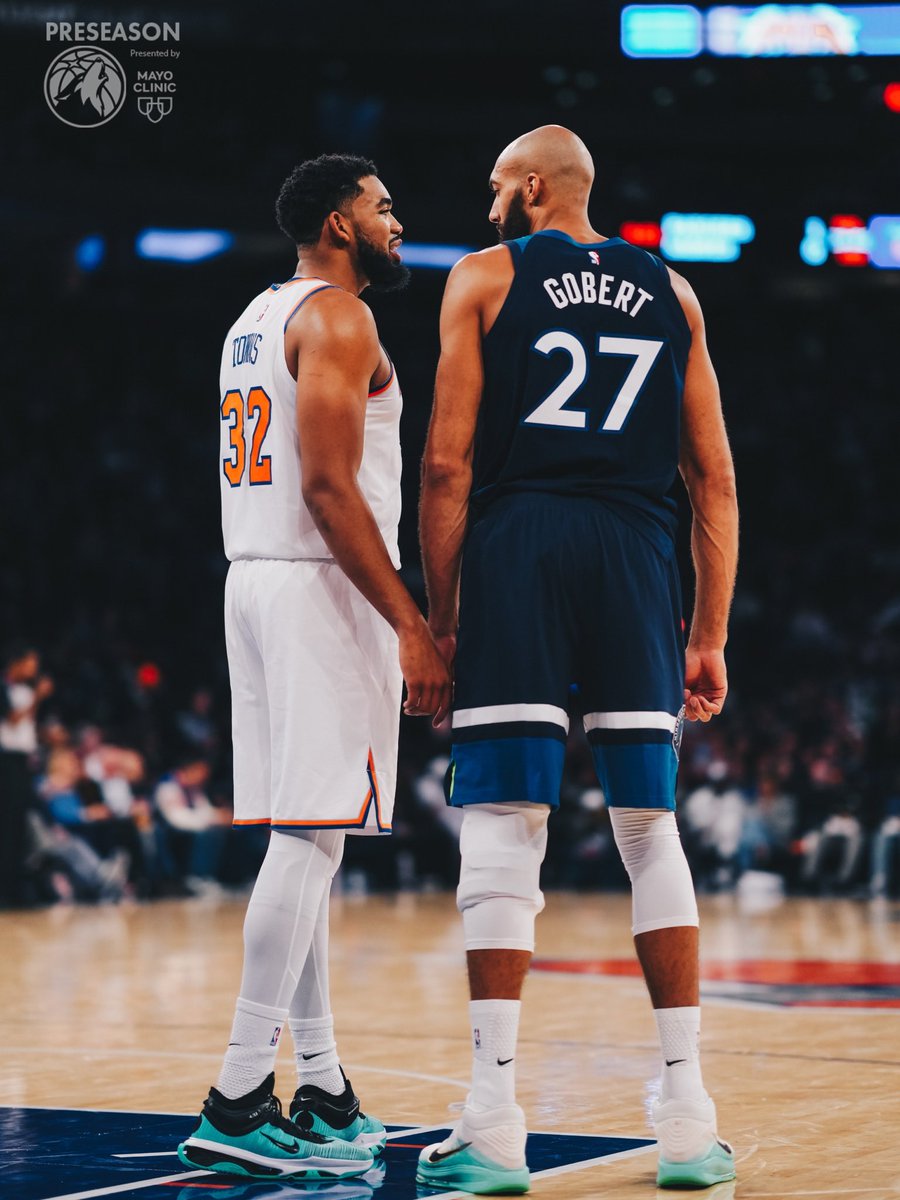 虎扑10月10日讯今日,森林狼官方在赛后更新社交媒体,晒出了卡尔-安东尼-唐斯与鲁迪-戈贝尔的赛场合照。
