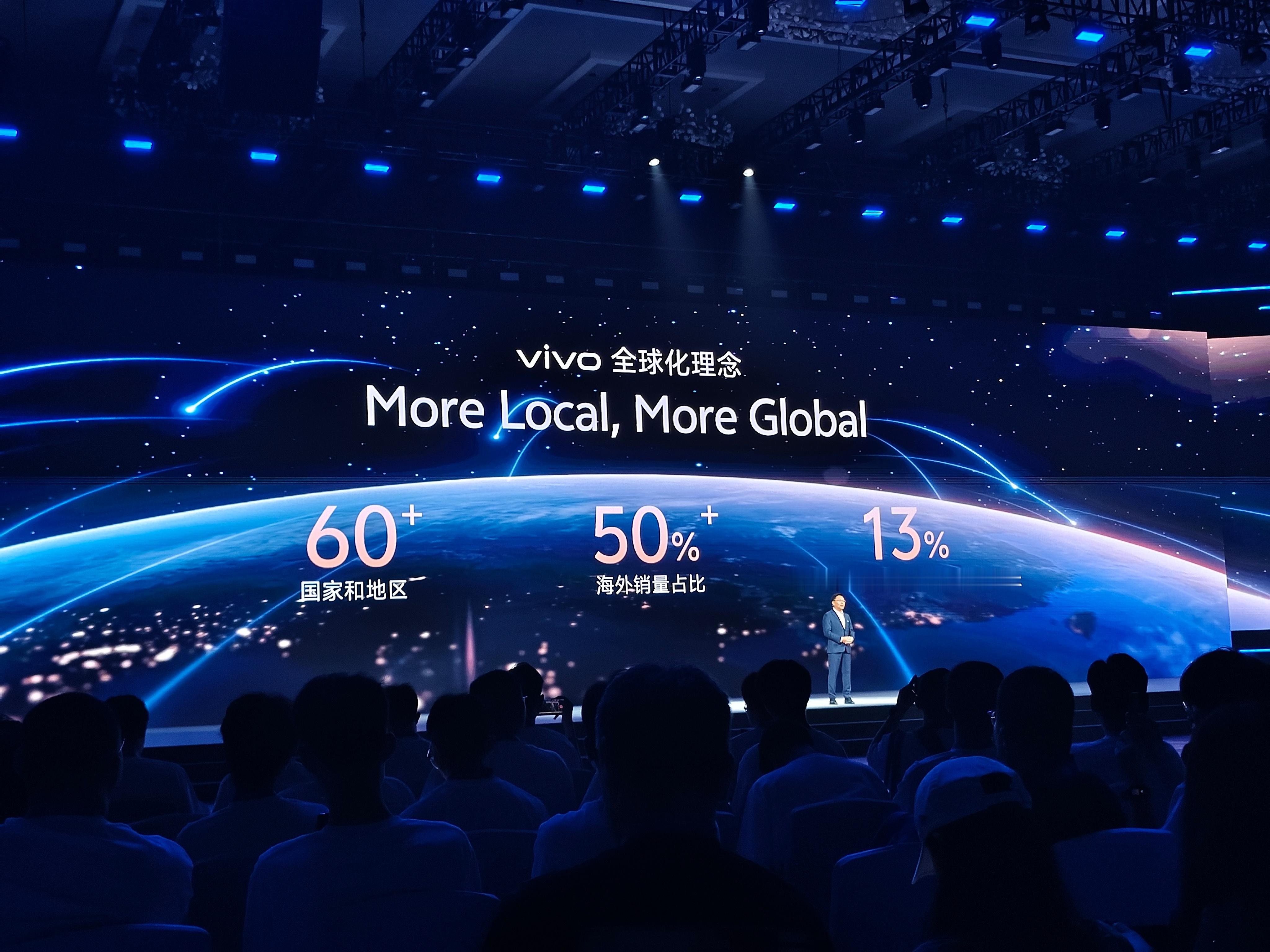 没想到vivo 在海外市场也非常猛啊,目前已经进入60+的国家与地区,海外销量占比50%。2025vivo开发者大会vivo全新系统originos6