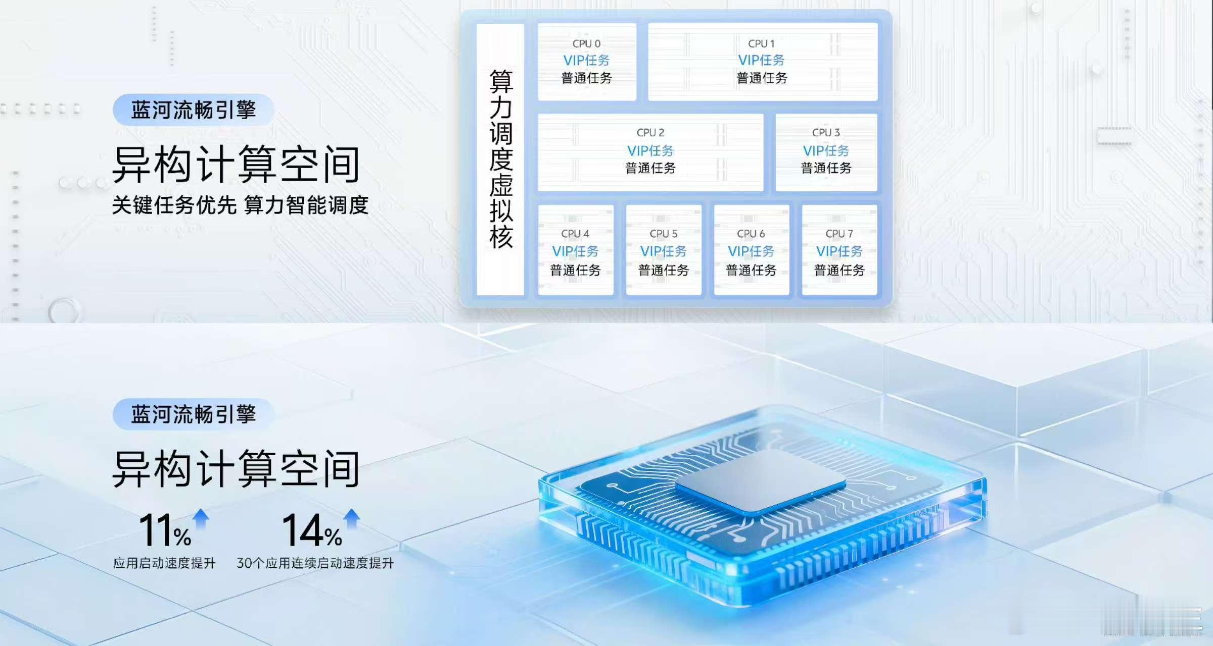 vivo在异构计算空间里推出超核计算,它是全局的算力调度器,能实时监测核心的负载状态并优先处理高优先级任务。即使所有核心都满载,它也能智能抢占普通任务的资源,确保关键任务的绝对优先。vivo全新系统OriginOS6