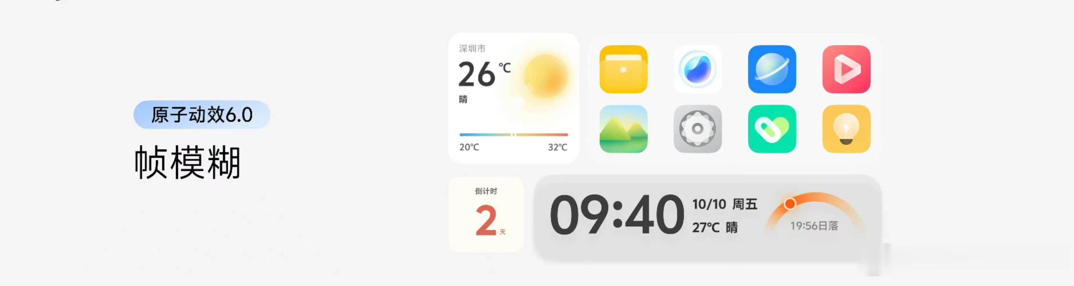 全新的帧模糊,它让原系统6的界面更有层次感。现在,当组件内文字刷新时,会呈现类似相机镜头的“对焦过程”,在内容变化时,还会呈现一个模糊到清晰的过程,消除了突兀和闪烁感。此外健康关怀、日历等组件及全搜下打开应用等场景中都加入了帧模糊效果,让整个视觉体验显得更加细腻和高级。