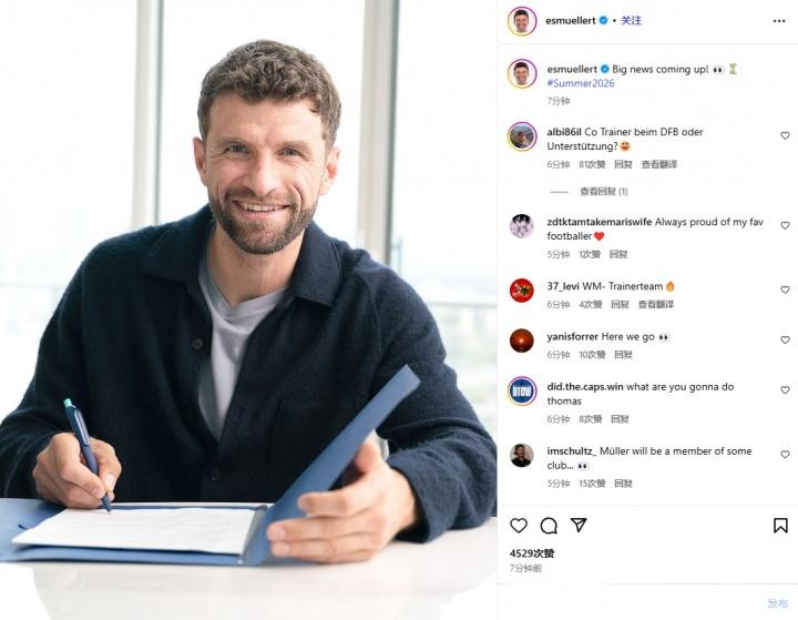 直播吧10月10日讯穆勒今日在社媒更新了一条动态写道:重磅消息即将揭晓,并带上了#2026夏天#的标签,引发球迷的无限遐想。