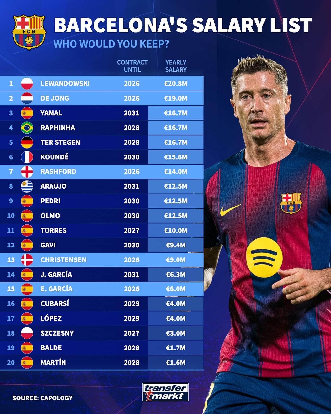 德转发布巴萨年薪&合同时长:莱万、德容等四人进入合同年