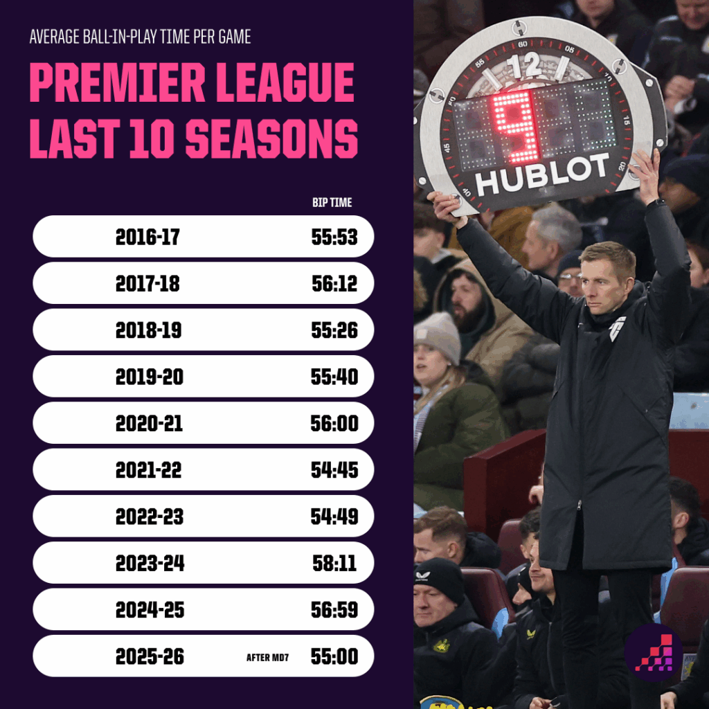 同时,本赛季至今的净比赛时长(55分钟)较上赛季锐减,较2023/24赛季的场均58分11秒更是减少了超过3分钟。
