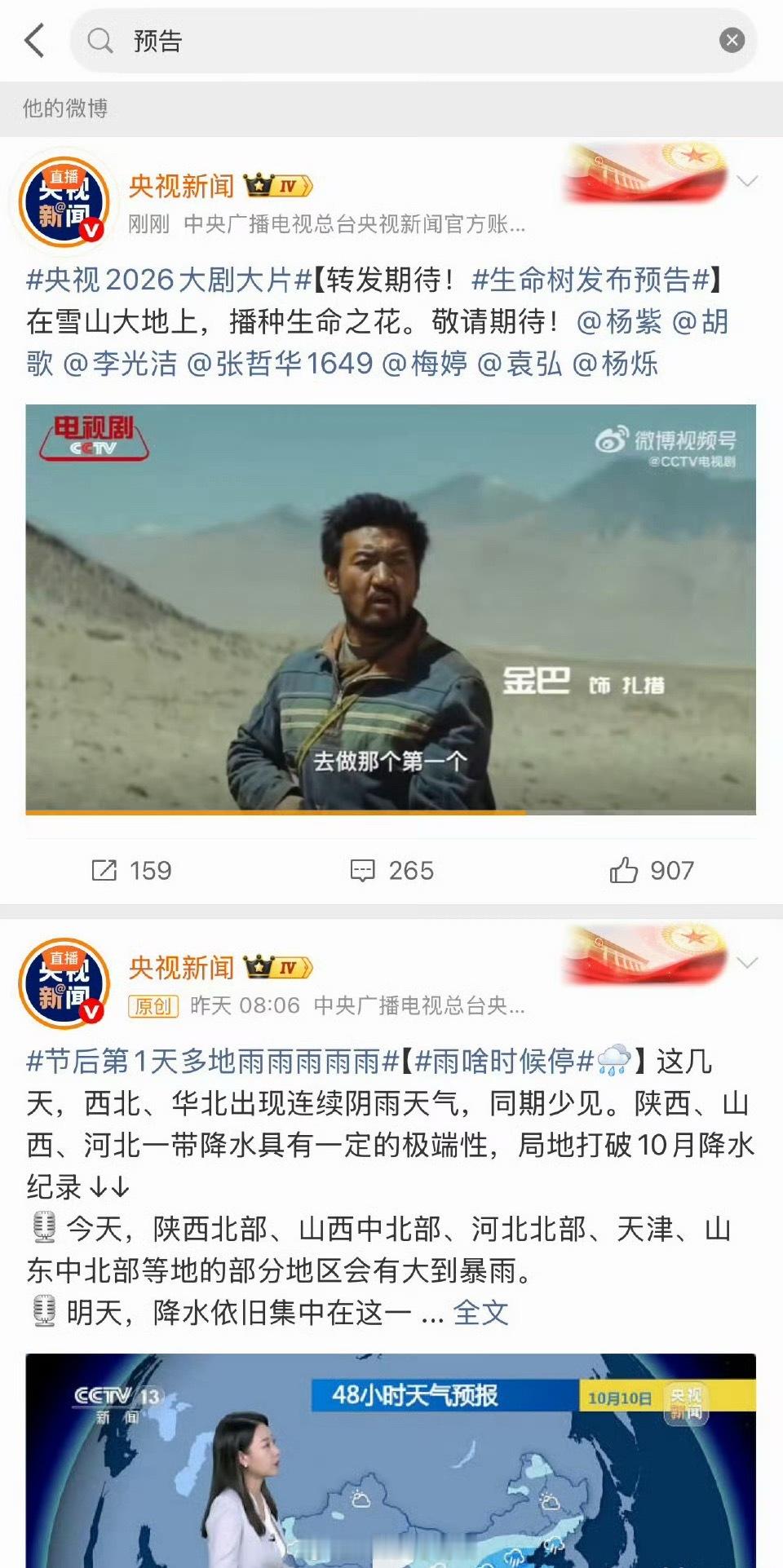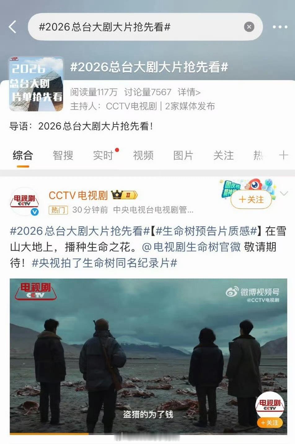 杨紫《生命树》排面,今天大剧名单两个词条置顶都是生命树,央视也只同步发了