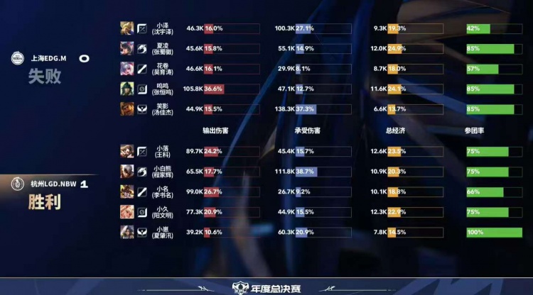 第一局:杭州LGD.NBW1-0上海EDG.M
