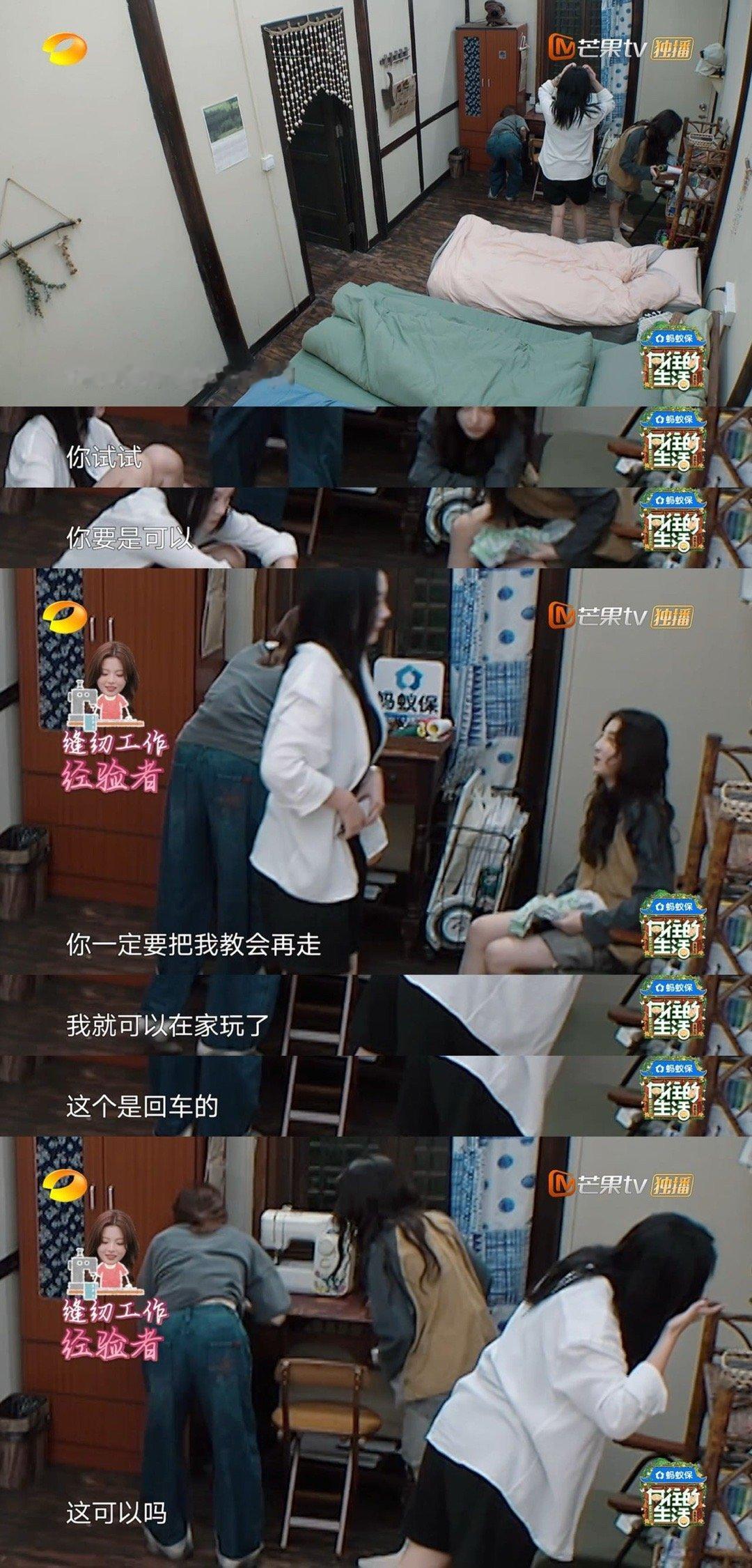 杨超越用缝纫机哇声一片向往的生活 女生宿舍欢乐多!杨超越零帧玩转缝纫机,张子枫拜
