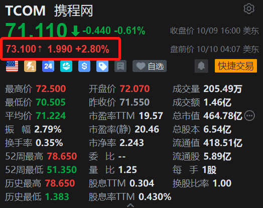 格隆汇10月10日|携程网(TCOM.US)美股盘前涨2.8%报73.1美元。消息上,国庆中秋假期旅游市场火爆,携程发布的“2025国庆中秋双节旅游报告”显示,远途旅行与深度体验成为今年国庆旅游主要趋势,国内长途游订单占比较去年提升3个百分点,出境长线游也受到游客热捧,多个欧洲目的地订单翻倍。出境包车游更是呈现深度化趋势,整体订单量同比增长超120%。此外,假期期间,“夜游”在携程上的搜索热度环比增幅超200%。(格隆汇)
