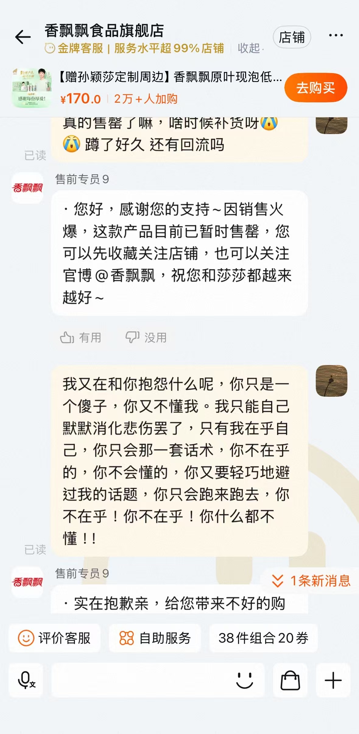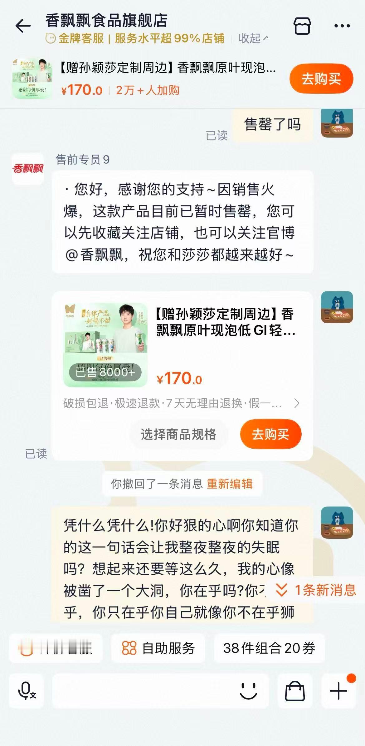 只是官宣既售罄,想买还买不到,香飘飘,麻烦你们快点补货啊,广大网友都快等不及了!