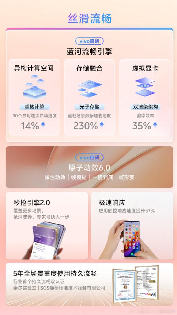 2025年了安卓够流畅了吗 我觉得目前安卓流畅程度已经可以比肩,甚至超过 iOS26 了,尤其是OriginOS6系统这次在流畅度上下了不少的功夫,首先就是感受最明显的动效方面,流畅动效的体验配合spring动效,不管是回弹还是暂停的物理效果都很不错,舒服无感的过渡也是一个亮点,同时应用切换和小窗的衔接做的都很好。vivo 自研的蓝河流畅引擎,让手机在高温以及高重载环境下依然不卡顿,响应的速度和流畅度有了不小的提升。
