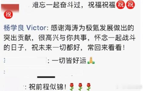 吉利控股集团高级副总裁杨学良留言致谢并祝福。关海涛曾任荣耀中国区CMO、电商部部长,2023年加盟极氪任CMO,2025年2月升任CBO。