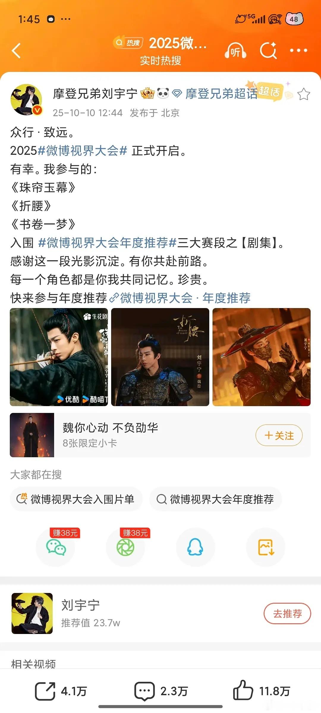 这个刘宇宁要卷亖所有人内娱工作最多的男艺人