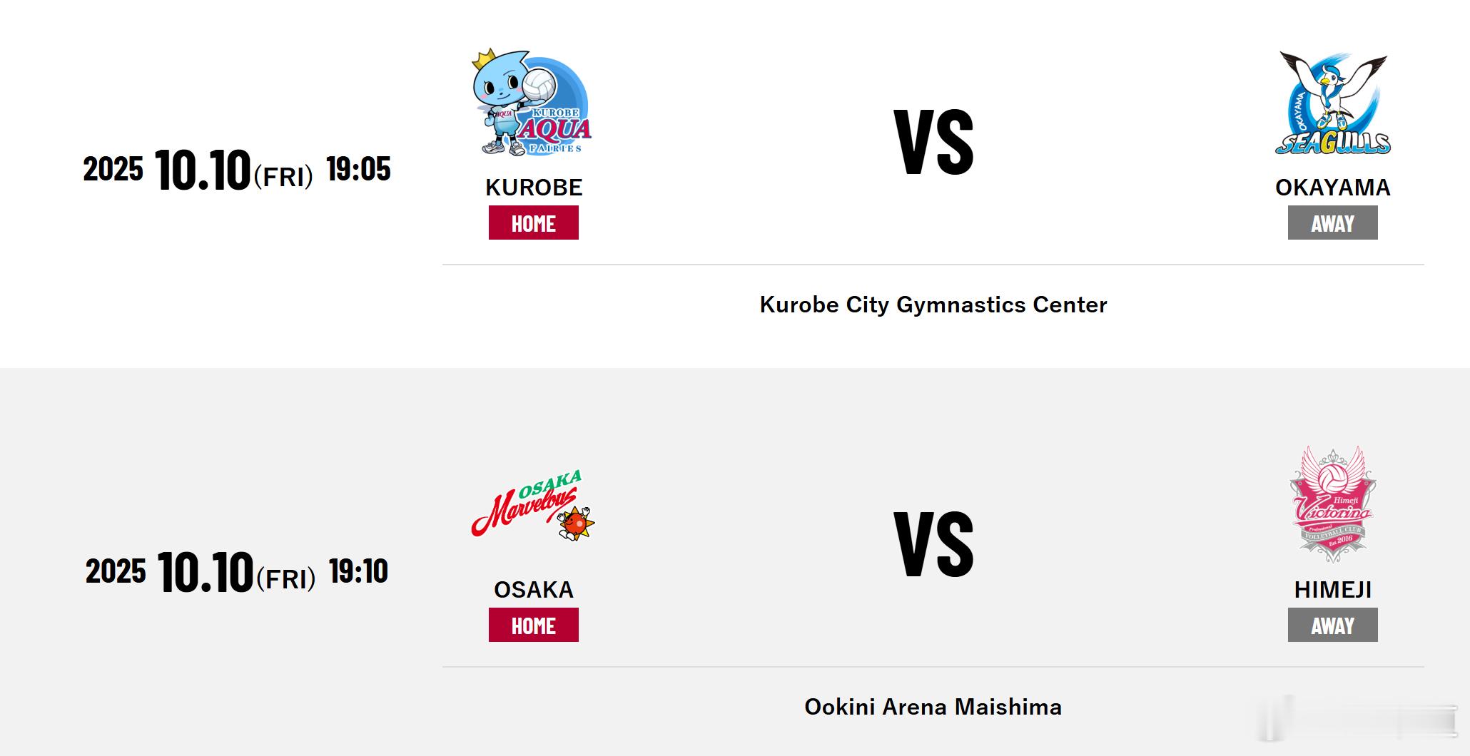 18:10 大阪JT奇妙 vs 维多利亚姬路