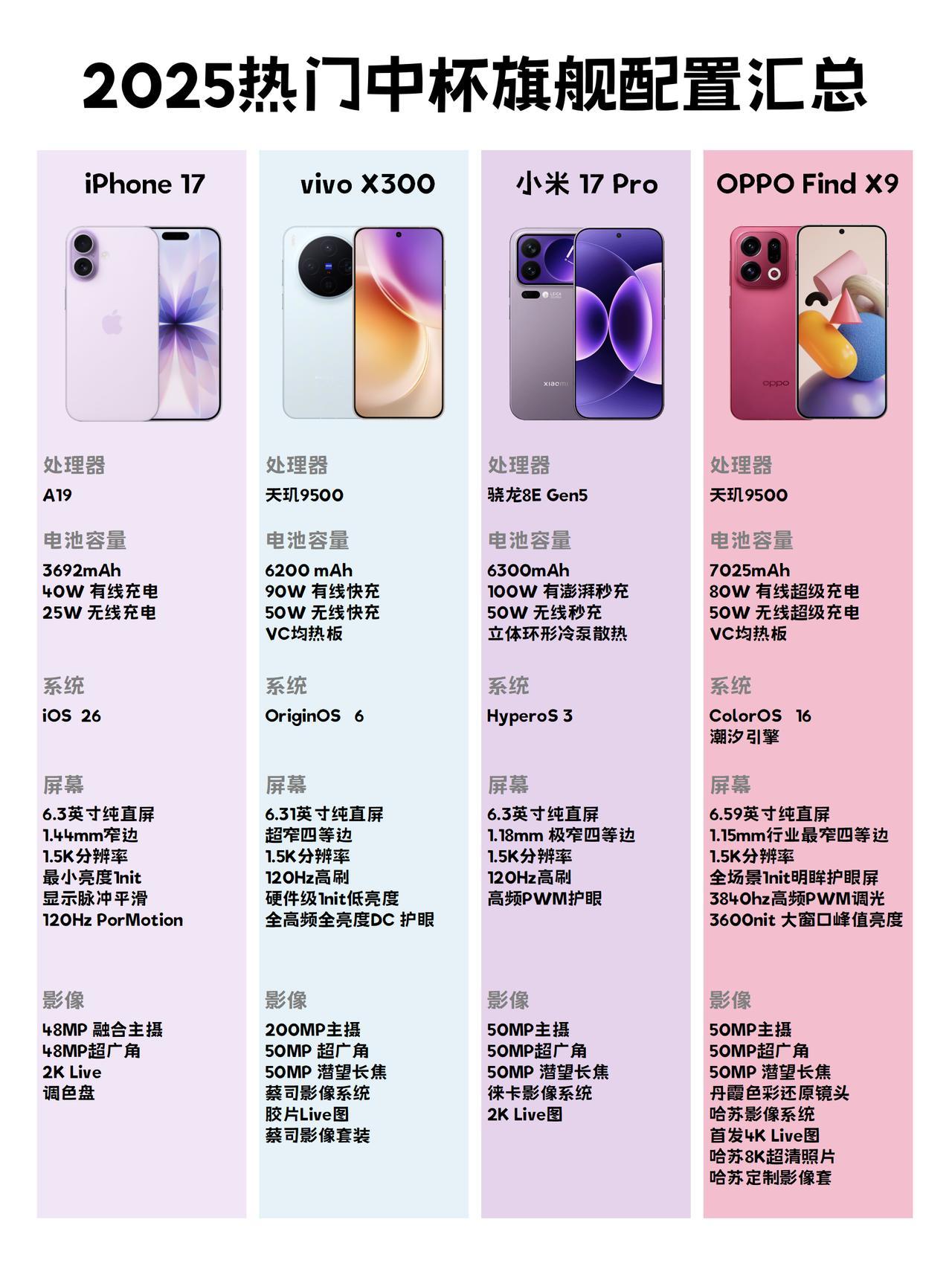 💼996打工人想要旅拍神器,手机能行吗? 作为996打工人,唯一快乐就是旅行拍照📸 但旧手机真的顶不住了😭拍夜景全是噪点,出门半天电量就红,在高铁上都不敢刷视频…… 下半年必须换!手!机! 认真盘了一下这段时间的热门手机 目前在iPhone 17、vivo X300、小米17 Pro和OPPO Find X9里反复横跳👇 📱 iPhone 17:视频拍摄稳,系统流畅,还上了120Hz屏幕🌞,但续航一般+价格肉疼 📱 vivo X300:蔡司镀膜拍人好看,夜景脸不黑,轻薄手感很香,就是电池没上7000有点可惜 📱 小米17 Pro:背屏自拍神器🤳,可玩性很高,可惜续航一般般 📱 OPPO Find X9:听说是「旅拍神器」,哈苏XPAN模式+全焦段8K照片📷,还有丹霞色彩还原镜头,出片色彩更自然,夜拍人像更有气血感,很适合爱出门旅游和到处拍照打卡的自己😏关键是还有7000+mAh大电池,续航嘎嘎猛啊,出游不用背相机,直接戳中我心巴! 🤔目前自己很倾向Find X9,巨喜欢哈苏影调,而且还有4K live,在🍠上分享还不会压画质,一路清晰到底!live党福音!想想以后旅行,不用背沉重设备,随手一拍就是大片,还能全天续航不怕错过美景,简直是我的“天选之机”!就是不知道💰价格咋样,准备蹲一下啊10.16发布会了✌️ 打工人IPhone小米OPPO Find X9