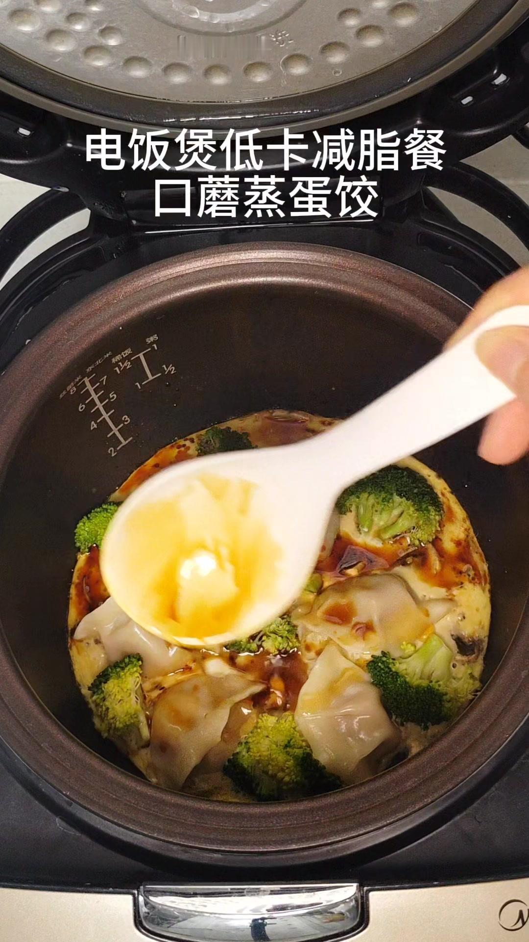 一口电饭锅搞定低卡减脂餐!🍳电饭煲做口蘑蒸蛋饺也太简单了吧!碗里打两个鸡蛋两勺水搅匀,口蘑切片铺在锅底,放冻水饺,把蛋液倒进去,西兰花按下煮饭键。等15分钟后淋一勺醋、生抽和香油,开吃!低脂高蛋白,好吃没负担~
