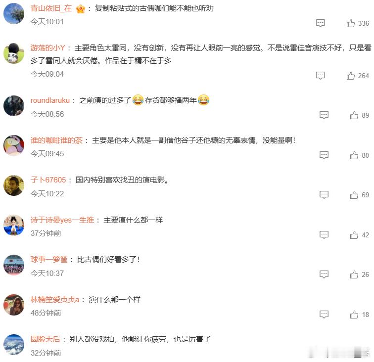 最近雷佳音接受采访时首次回应作品霸屏,表示:我是特听劝那种的,因为我早就意识到这个问题了,也有小半年没演了,而且还会休息。确实可以好好休息充电,减缓节奏,多拍好作品,慢慢地就老戏骨了,演配角也出彩。