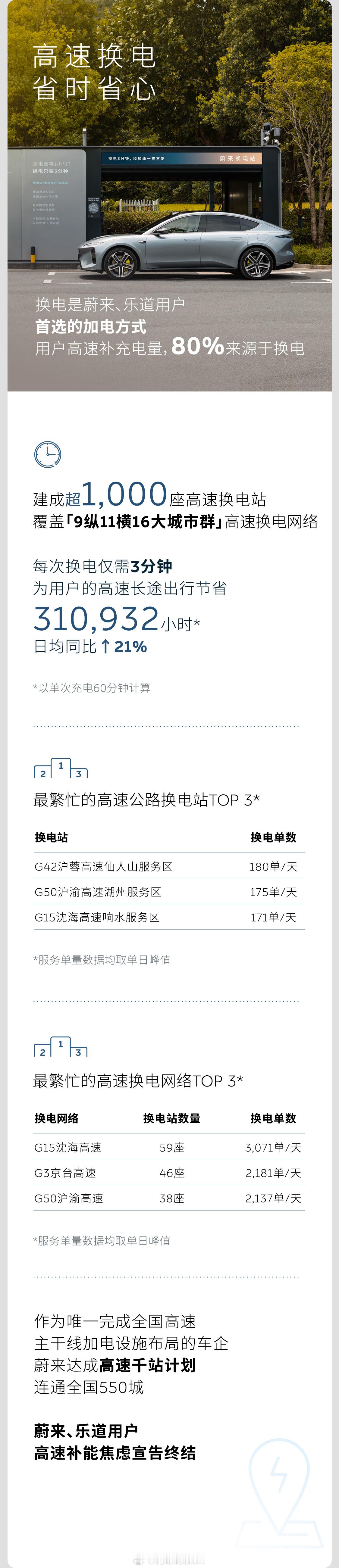 刚刷到蔚来国庆加电报告,这一连串可视化数据确实牛掰!我这个国庆假期也实打实地体验了一把蔚来ET5的换电之旅, “补能焦虑” 确实没了!且可以获得和传统燃油车加油一样便捷的体验。