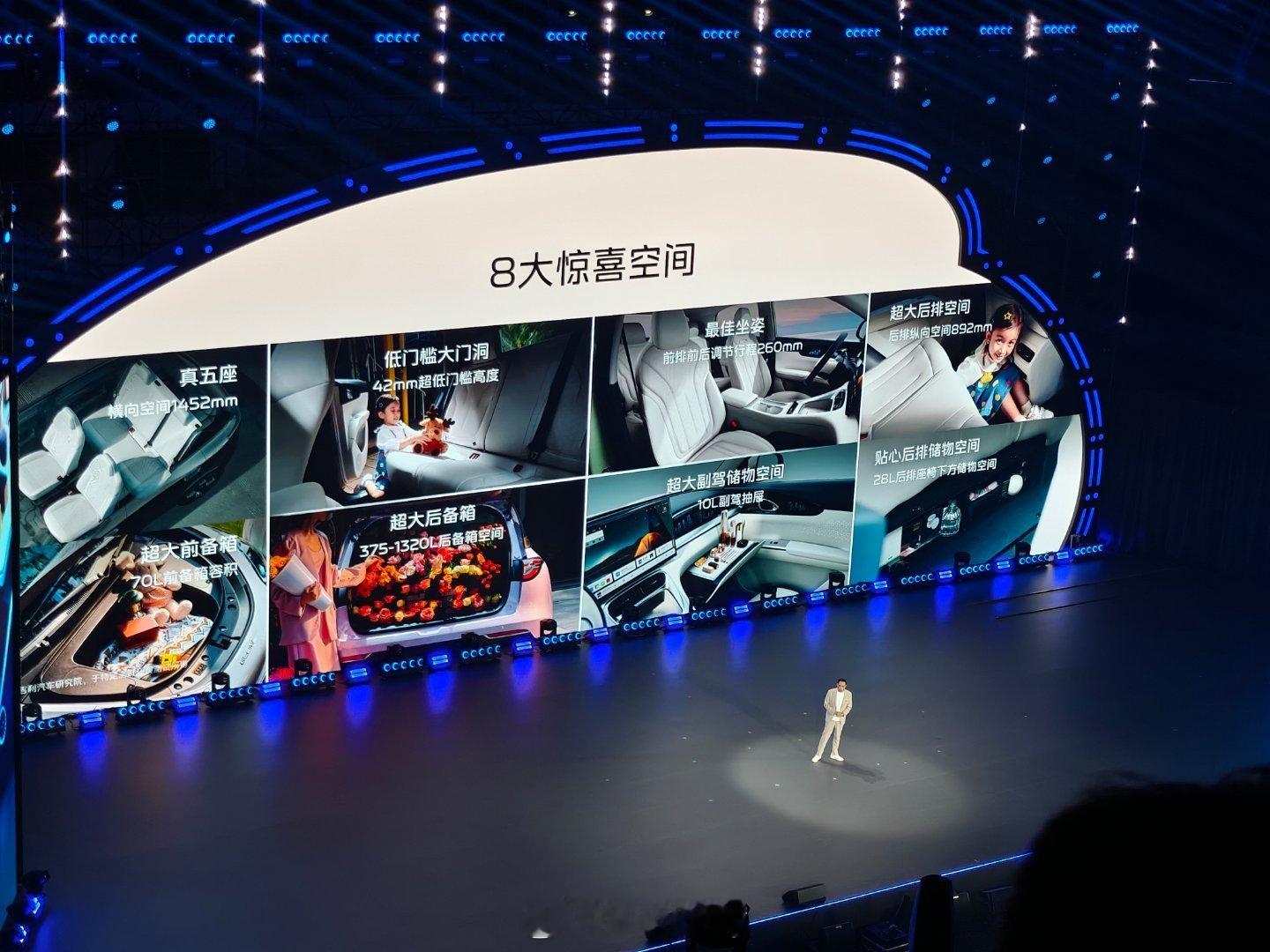 横向空间达1452mm,保障五人乘坐的宽敞度;42mm超低门槛高度,方便老人、孩子或携带重物时上下车;超大后排空间,腿部活动更自由;容积70L的前备箱可收纳多样物品;超大后备箱空间区间375-1320L,满足家庭出行、购物等大容量储物需求;还配备10L副驾抽屉,提升小物件收纳便利性,贴心后排储物空间,收纳取用更方便。