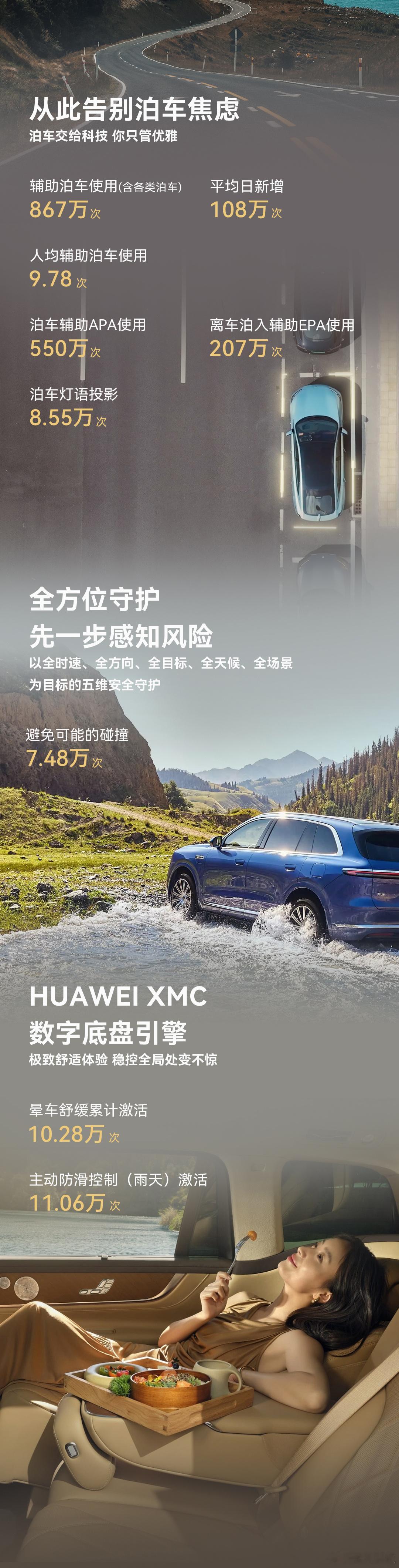 此外,华为乾崑智驾的安全性能同样令人信赖。国庆期间,系统成功避免了7.48万次可能的碰撞,展现了其“全时速、全方向、全目标、全天候、全场景”的安全守护能力。截至目前,华为乾崑辅助驾驶总里程已达到54.24亿公里,超越理想汽车的53.4亿公里,成为用户信赖的第一品牌。