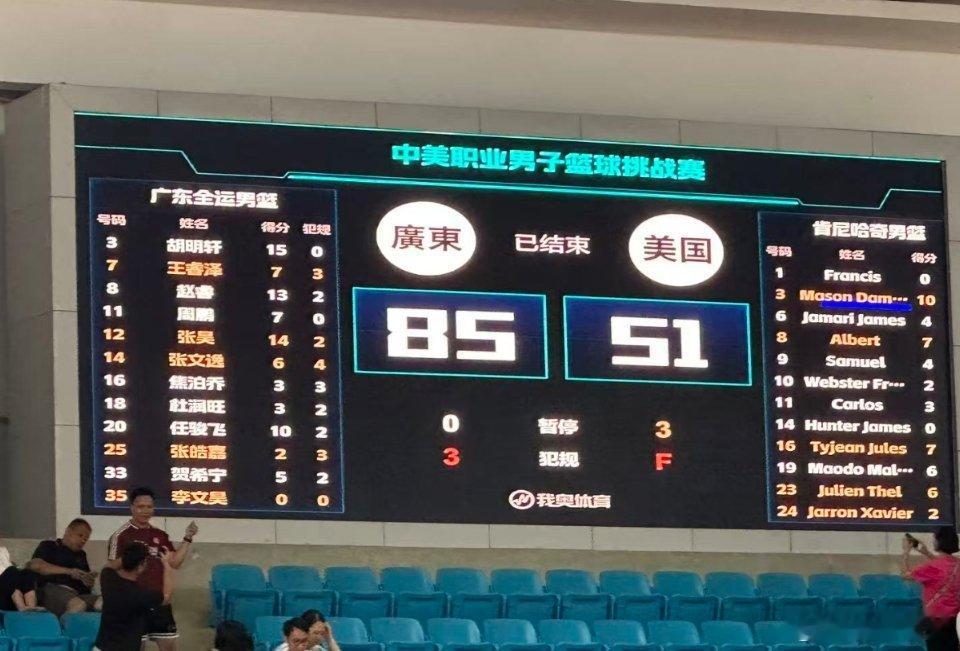 新会站广东全运男篮34分优势轻取对手,断断续续看了会儿直播,二飞油箱里明显还有油,赵睿和胡明轩打这种热身赛降维打击了,场上游刃有余基本没怎么发力,小胡拿到全场最高分,轻松打卡下班