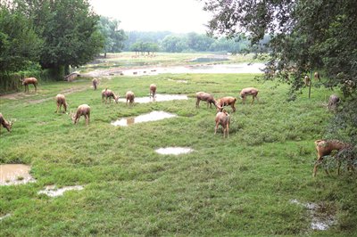 “现在麋鹿的生活环境、游客的参观环境以及我们的工作环境都发生了翻天覆地的变化,有了很大的改善。”段建彬回忆。2009年他从北京建筑大学毕业来到麋鹿苑,这一年,麋鹿栖息地刚刚完成了改造。2010年,结合麋鹿苑的规划蓝图,有着丰富施工经验的段建彬带着他的团队便开始了参观区和实验区的改造建设。